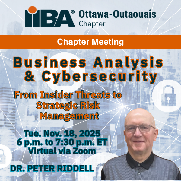 Join Dr. Peter Riddell in a participatory discussion of the BA’s role and responsibilities in Information Security Risk (ISR) amongst the backdrop of this ever-changing ISR environment.